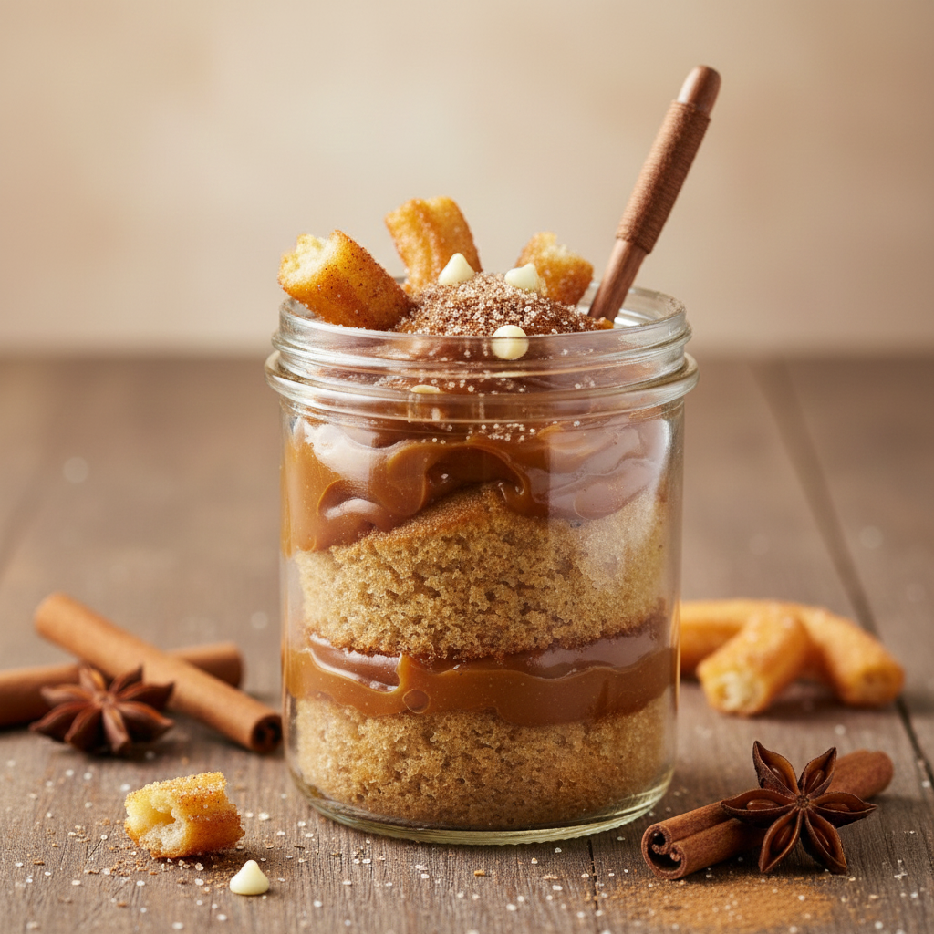 Bolo de pote de churros com doce de leite