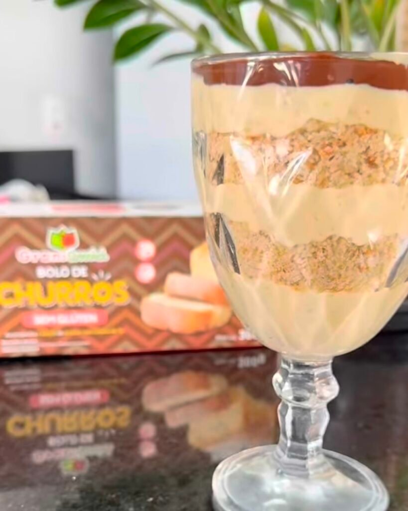 Sabe aquele momento de puro prazer? Esse copo é exatamente isso. Com camadas do nosso Bolo de Churros, pasta de amendoim, iogurte e chocolate 70%, é a sobremesa que vai deixar seu dia mais doce.