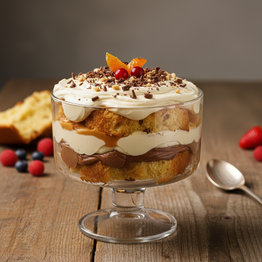 4. Para montar, alterne camadas de Granittone fatiado e creme em uma travessa.