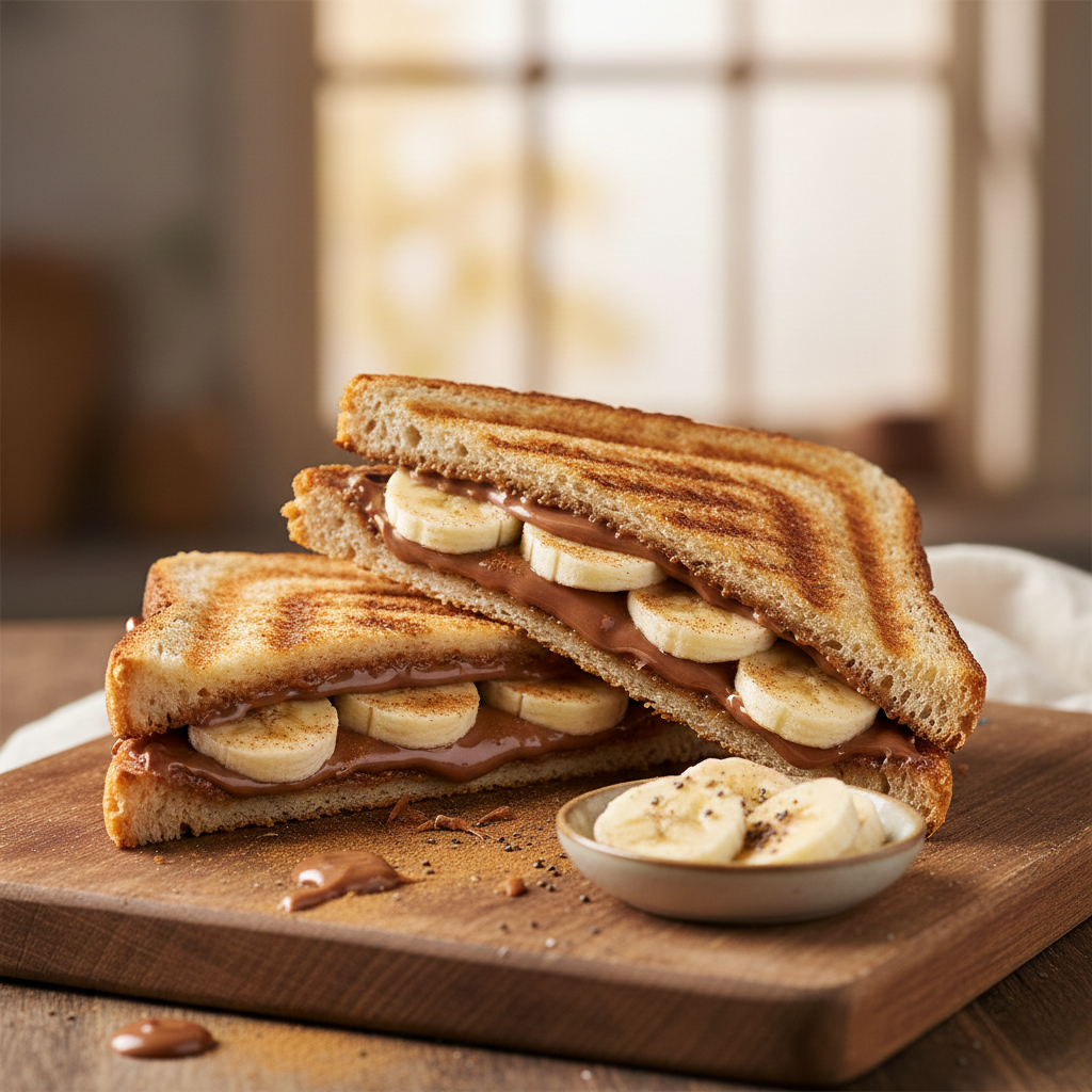 5. Leve à sanduicheira por 4–6 minutos (ou à frigideira, pressionando com uma espátula, virando na metade do tempo) até dourar e o creme aquecer.